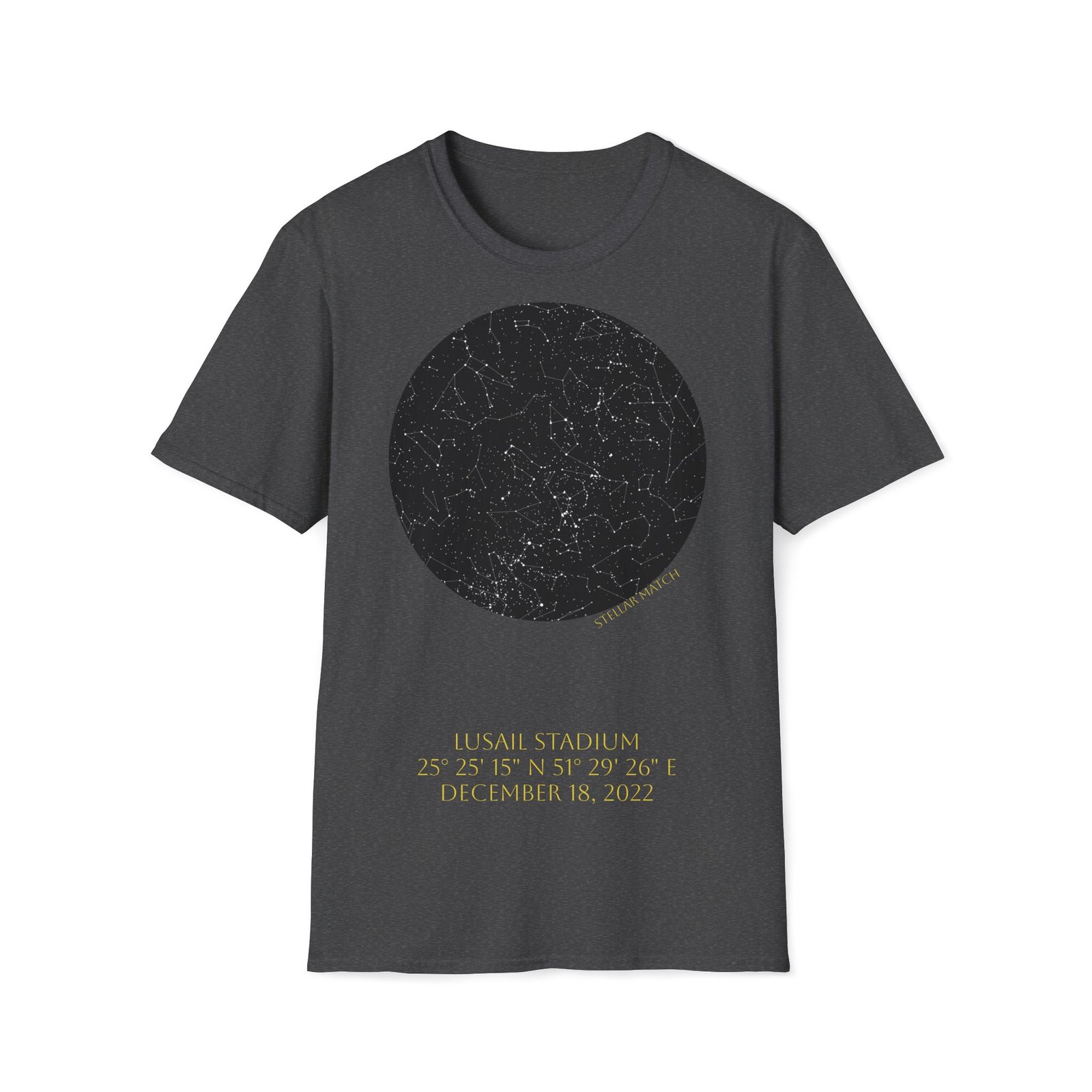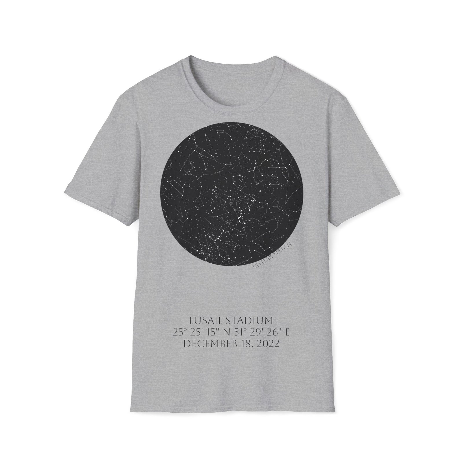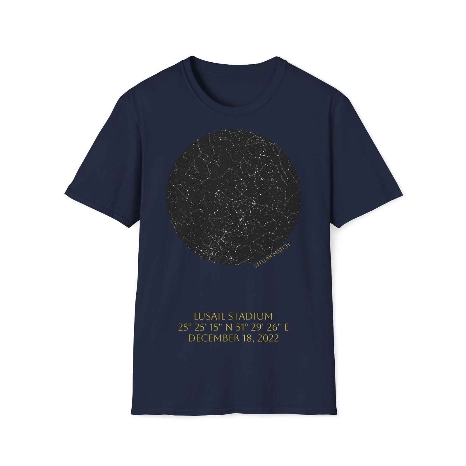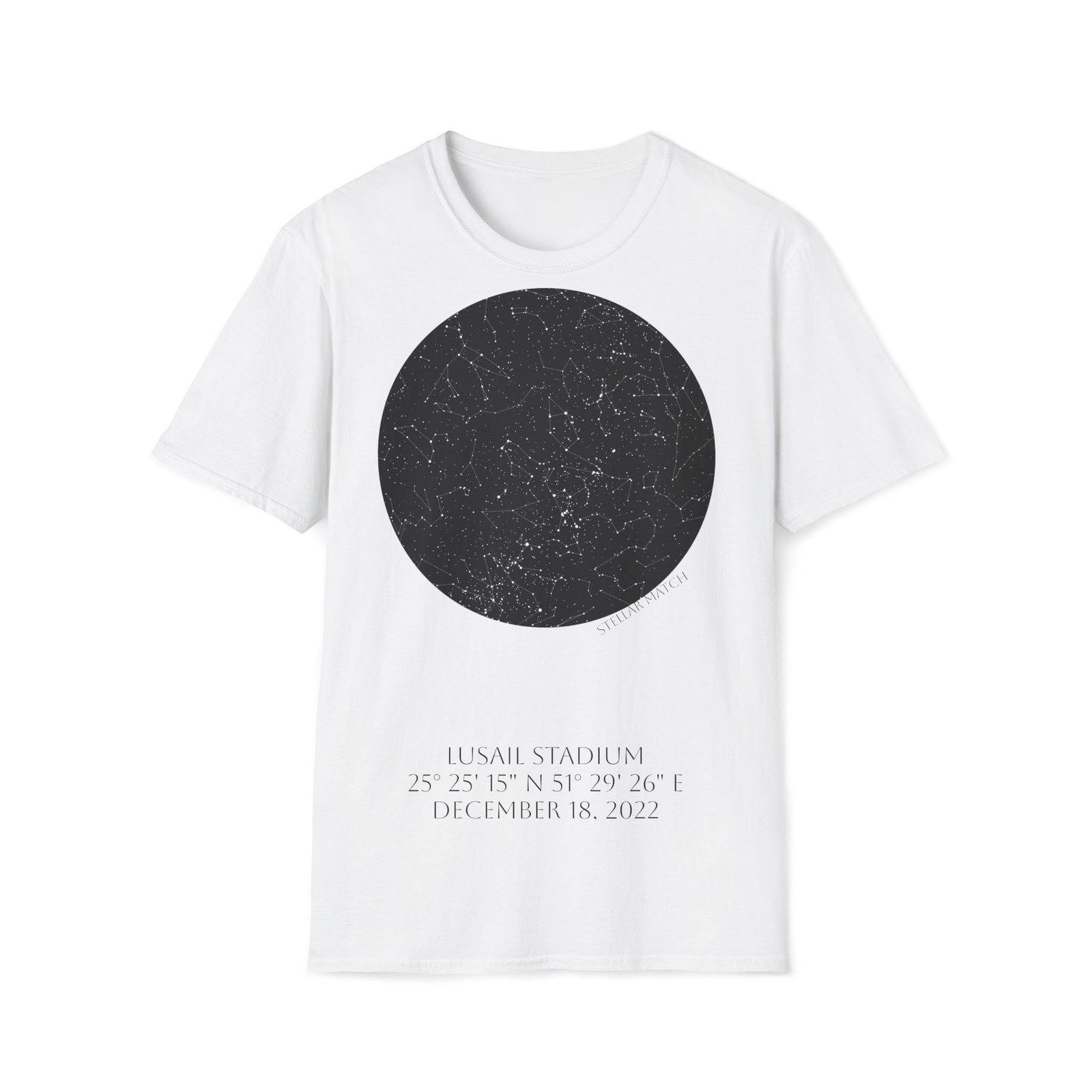 Lusail Stadium, December 18, 2022 Match Written in the Stars – T-Shirt On December 18, 2022, beneath the night sky above Lusail Stadium, one of football’s most unforgettable matches unfolded.The night a legend completed football’s ultimate journey. This design captures the exact celestial alignment over Lusail at kickoff — mapped precisely by date, time, and […]